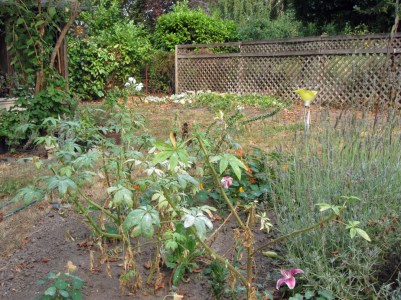 In some ways this “new” garden seemed easier to care for, compared to the former one, with seemingly less watering needed, although the overall bounty was a bit less. Whereas the high amount of loam in the old community garden was well drained and easy to dig, more clay in the present yard helped retain moisture longer, even if it made the ground a bit harder to work to start with. And, more shade trees overhang this yard, keeping the area a bit cooler.