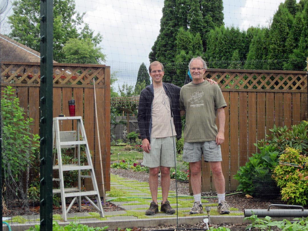 Randall showing his new expertise, gardening and computer-tasking, both at the same time…not! Pleased with a new front yard that should be relatively drought tolerant in a couple of years.